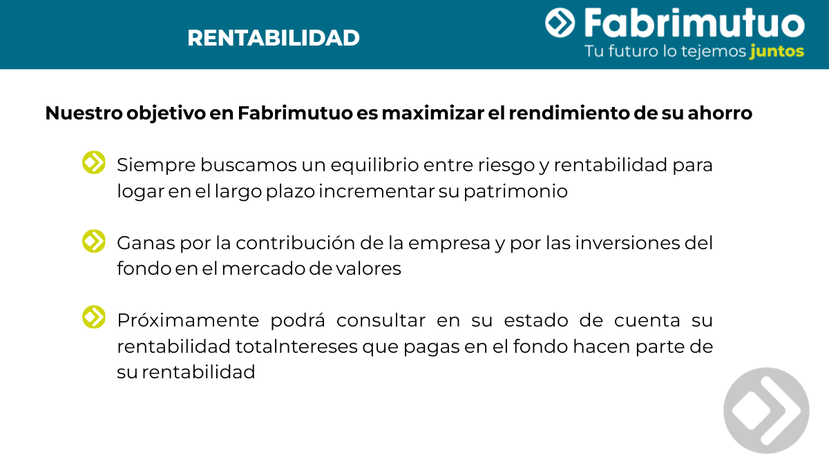 El fondo tiene cierre anual en diciembre. Cada año se distribuyen las utilidades entre los afiliados activos según su ahorro total.